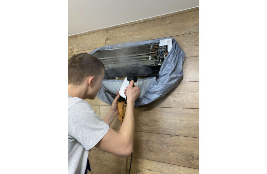 - технічний огляд (діагностика обладнання) – виявлення несправності в системі. А саме: компресора, електронних плат, перевірка міжблочного кабелю і кабелю електроживлення, перевірка цілісності дренажної системи);